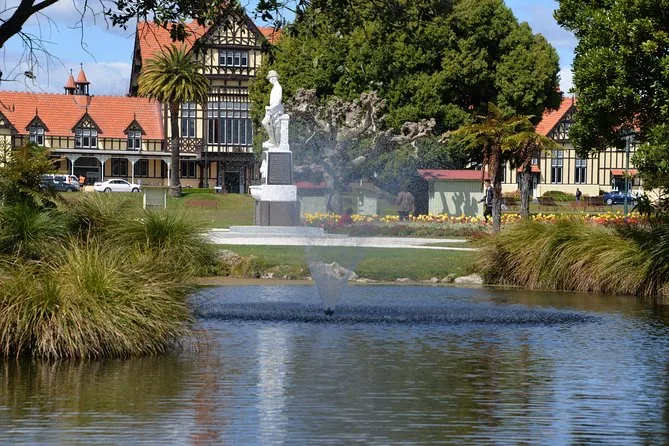 Il viaggio da Tauranga è durato circa un’ora, ma sembrava un altro mondo. Abbiamo attraversato i frutteti di kiwi con le loro siepi ordinate (Mike ci ha indicato Te Puke, considerata la “capitale del kiwi”). A Rotorua ci siamo fermati a Sulphur Point, dove uccelli nativi camminavano nell’acqua fumante del lago. C’era un cigno nero che ci fissava a lungo — forse sperava in qualche snack? Poi siamo passati ai Government Gardens: vecchie terme con tetti eleganti e fiori ovunque. A Whakarewarewa Village, dove abbiamo pranzato (per me una torta salata), ho provato a pronunciare “Whakarewarewa”, ma ho fatto più ridere Li che altro.