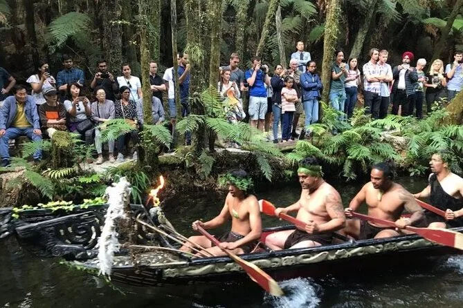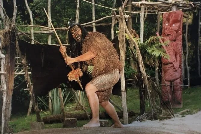 Entra nel cuore del Mitai Maori Village di Rotorua: guarda i guerrieri pagaiare al chiarore delle torce, senti la potenza dell’haka da vicino, gusta una cena tradizionale hangi a buffet e passeggia nel bosco nativo per ammirare le lucciole vicino a una sorgente nascosta. Una serata calda e autentica che ti resta dentro.