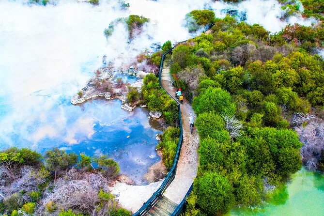 Se vuoi vivere da vicino le meraviglie geotermiche di Rotorua senza folla né fretta, questa passeggiata autonoma è l’ideale. Natura vera della Nuova Zelanda: pozze fumanti, boschi nativi e tempo per esplorare a modo tuo. Porta la macchina fotografica e magari una giacca leggera; può fare caldo per il vapore ma fresco all’ombra.