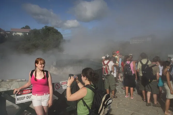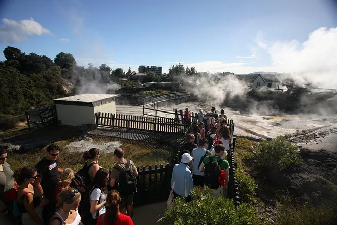 Il tuo giorno include i biglietti d’ingresso al villaggio Whakarewarewa, una passeggiata guidata da discendenti locali del popolo Tūhourangi Ngāti Wāhiao, piattaforme sicure per ammirare il geyser Pohutu e le altre meraviglie geotermiche, più la degustazione del mais cotto nella loro piscina più grande prima di concludere.