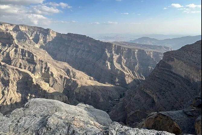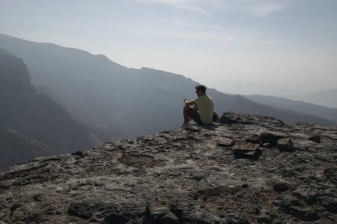 Jebel Shams è stata l’ultima tappa. L’aria lì su è cambiata — fresca e pungente, quasi rarefatta rispetto a sotto. Siamo rimasti a guardare dal bordo quello che chiamano il Grand Canyon dell’Oman, anche se onestamente non somiglia a niente di quello che ho visto finora. Said ci ha lasciato tutto il tempo che volevamo, senza fretta. Al ritorno, tutti erano silenziosi in quel modo piacevole che ti prende quando sei sazio dopo una giornata intensa.