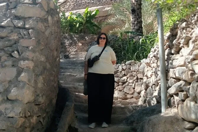 Salire verso Misfat Al Abriyeen con il 4x4 è stato come entrare in un altro mondo. Il villaggio è arroccato in alto — case di pietra una sopra l’altra su terrazze, palme verdi ovunque. Abbiamo camminato su sentieri stretti dove l’acqua scorreva nei canali antichi del falaj (per poco non scivolavo; i sandali non erano la scelta migliore). C’è stato un momento in cui si sentivano solo uccelli e voci lontane che rimbalzavano sulle pietre — quella quiete mi è rimasta impressa.