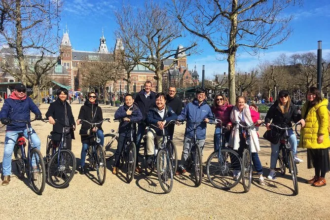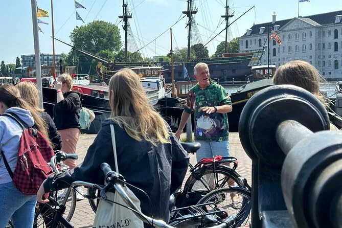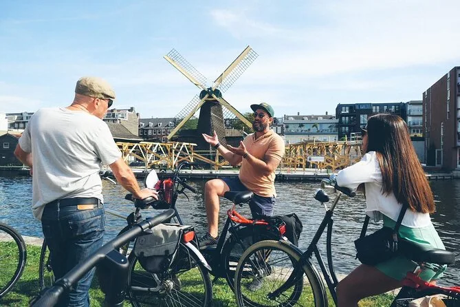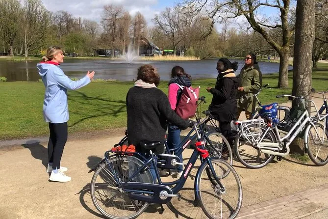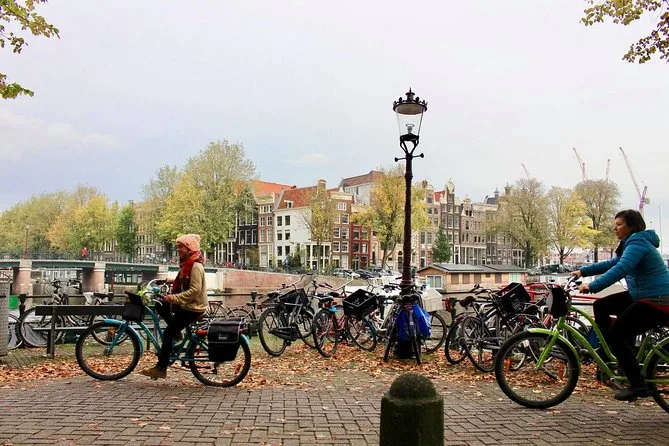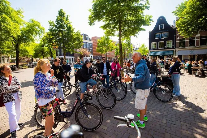 Il tuo giorno include un tour guidato in bici di 2,5 ore ad Amsterdam (bici fornita), con una guida locale che parla inglese e gruppi piccoli fino a 15 persone. Partirai dalla Stazione Centrale e pedalerai insieme attraverso quartieri e parchi iconici, con una pausa per un drink a metà percorso prima di tornare al punto di partenza.