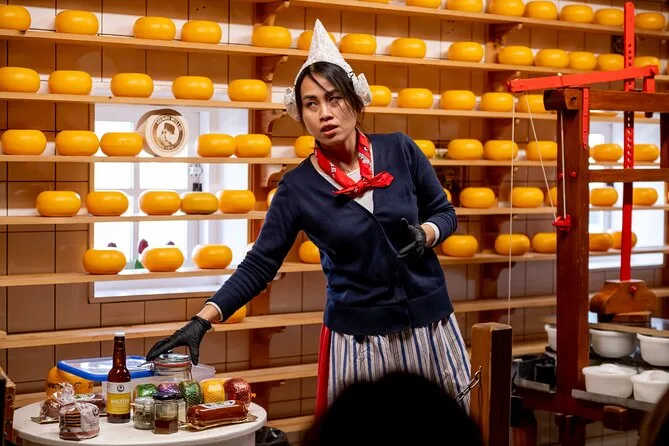 Il tuo giorno comprende il trasporto comodo in bus climatizzato da Amsterdam con commenti dal vivo della guida, ingresso a Zaanse Schans per vedere i mulini a vento, soste pratiche in laboratorio di zoccoli e fabbrica di formaggi con tanti assaggi, seguito da un’ora di giro in barca guidato nei tranquilli canali di Giethoorn e infine tempo libero per passeggiare o pranzare prima del rientro.