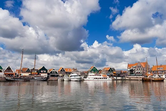 Sentirai il vento nei mulini storici di Zaanse Schans, assaggerai il vero formaggio Edam in un negozio di paese, passeggerai nel porto vivace di Volendam per pranzo o shopping, poi attraverserai le vie antiche di Marken — con storie e colori locali ad ogni tappa.