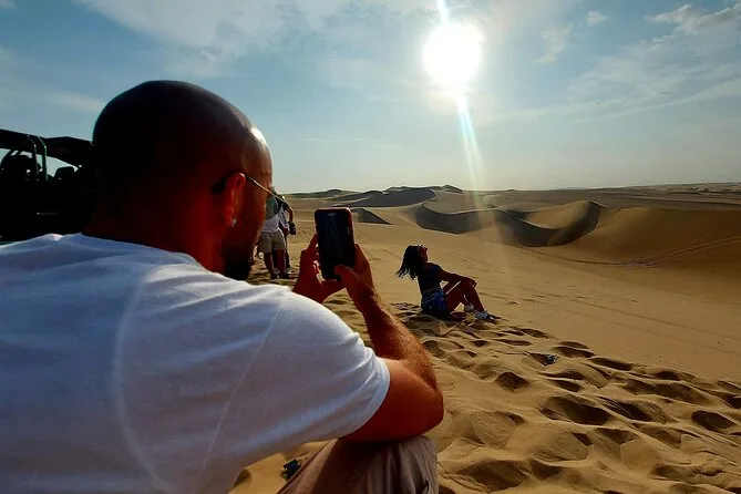 I bambini possono partecipare, ma tieni presente che i buggy sono veloci e lo sandboarding può essere un po’ impegnativo. I più piccoli devono sedere con un adulto durante gli spostamenti.