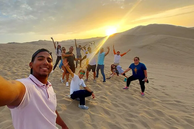 Trasporto privato con aria condizionata, pranzo completo con specialità di Ica e chicha morada, guide esperte bilingue, tutti i biglietti d’ingresso, degustazione di pisco e tutte le attività sulle dune – niente costi nascosti.