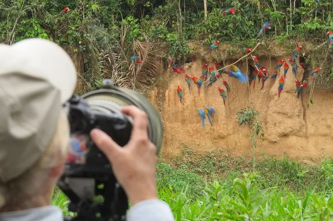 • Osservazione dei macaws e pappagalli che mangiano argilla