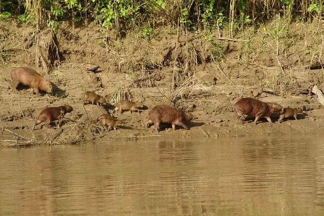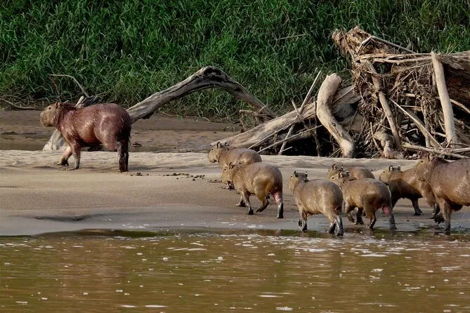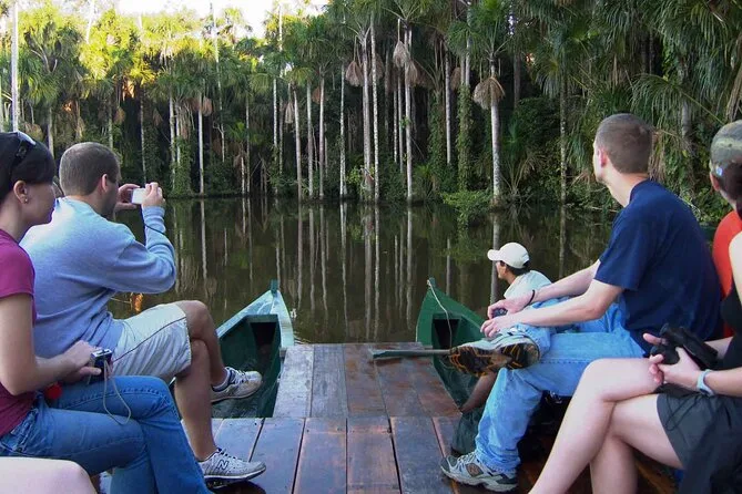 Non si possono garantire gli avvistamenti, ma hai buone possibilità di vedere scimmie, lontre di fiume, caimani, tartarughe e molti uccelli—specialmente intorno al Lago Sandoval e all’Isola delle Scimmie.