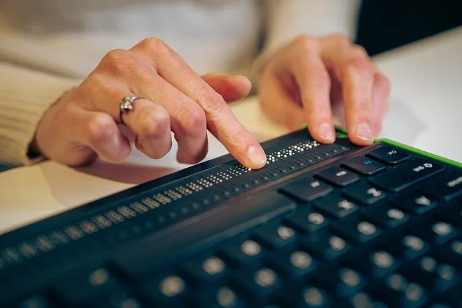 Sì, una guida non vedente accompagna tutto il percorso e risponde alle domande.