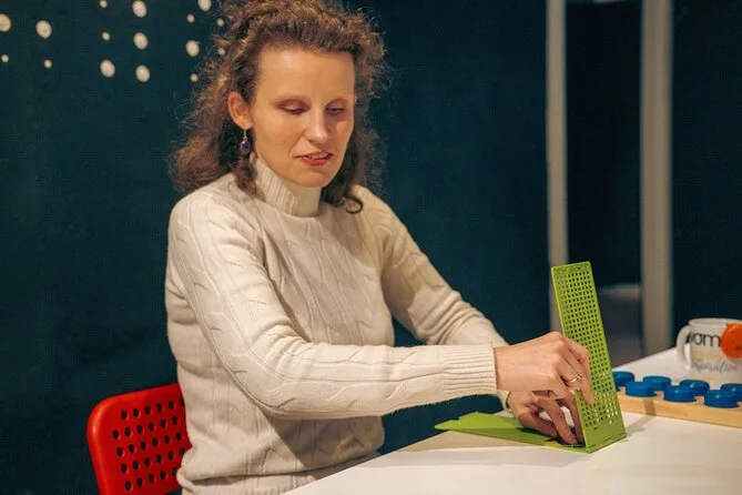 Avanzavamo insieme, urtandoci un po’ (scusate chi ho colpito con il gomito). Piotr ha iniziato a descrivere cose che non potevamo vedere—oggetti su un tavolo, la forma di una stanza—e ci ha chiesto di indovinare cosa fossero solo toccandoli o ascoltando. Qualcuno ha riso dopo aver fatto cadere una tazza; io ero nervoso all’idea di inciampare su qualcosa di invisibile. A un certo punto Piotr ci ha chiesto se volevamo provare a versare l’acqua in un bicchiere senza guardare. Le mie mani tremavano più del previsto. Ci ha raccontato come ogni giorno si muove per Krakow così—senza luce, solo con la memoria, i suoni e la fiducia nel suo bastone.