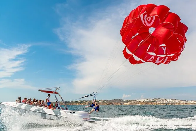 Decollerai da Albufeira Marina per un’avventura in parasailing in piccolo gruppo lungo la costa dell’Algarve. Ti alzerai fino a 80 metri per circa 10 minuti, mentre un team professionale si occupa di tutto. Aspettati risate in barca, brezze marine e panorami indimenticabili — con tutta l’attrezzatura di sicurezza inclusa.