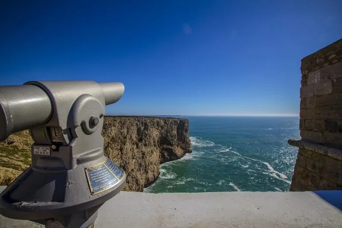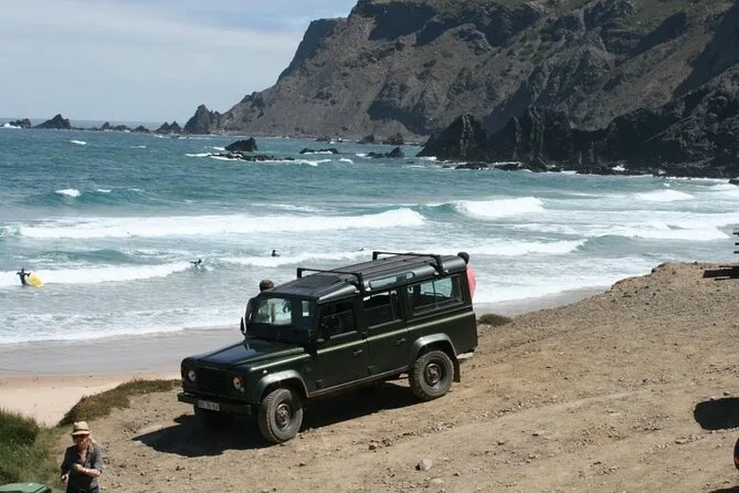 Il tuo giorno include il pickup in hotel tra Lagos e Sagres, visite a Sagres e Capo San Vincenzo, un percorso off-road nella Costa Vicentina con soste in una spiaggia nascosta e su scogliere spettacolari per il tramonto—con vino e pastel de nata prima del rientro.