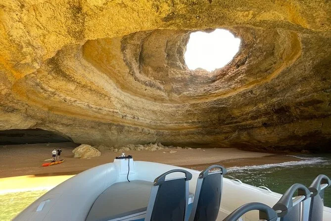 La tua giornata include un giro in gommone dalla Marina di Albufeira con giubbotti di salvataggio forniti dall’equipaggio e assicurazione per tutta la durata del viaggio lungo la costa dell’Algarve — tutto guidato da esperti locali che raccontano storie mentre visiti grotte e cerchi i delfini prima di tornare al porto.