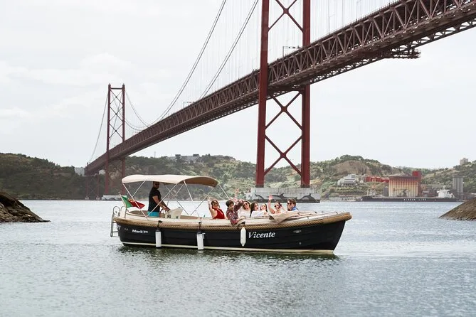 Il tuo giorno include una crociera di 1,5 ore in piccolo gruppo sul fiume Tago a bordo della confortevole barca Vicente con un equipaggio locale amichevole che ti guiderà tra i principali monumenti; potrai gustare pastel de nata freschi e un open bar con birra, vino bianco e rosato, caffè, bibite come Coca-Cola o Fanta e acqua naturale, prima di tornare insieme al porto.