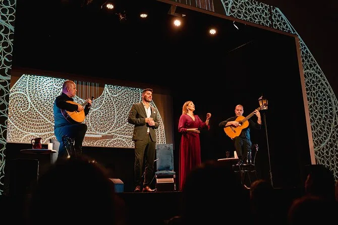 La serata include ingresso garantito senza fila allo spettacolo dal vivo di Fado in Chiado con cantanti e musicisti talentuosi che suonano il fado tradizionale con chitarre acustiche e portoghesi; tasse locali incluse, così puoi arrivare (anche con sedia a rotelle o passeggino) e goderti tutto senza pensieri.