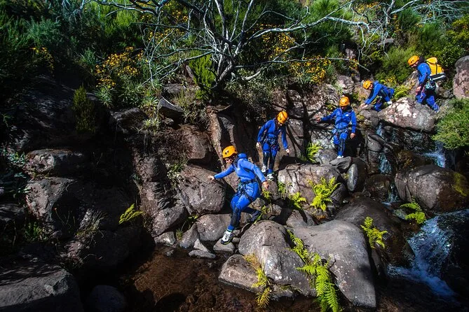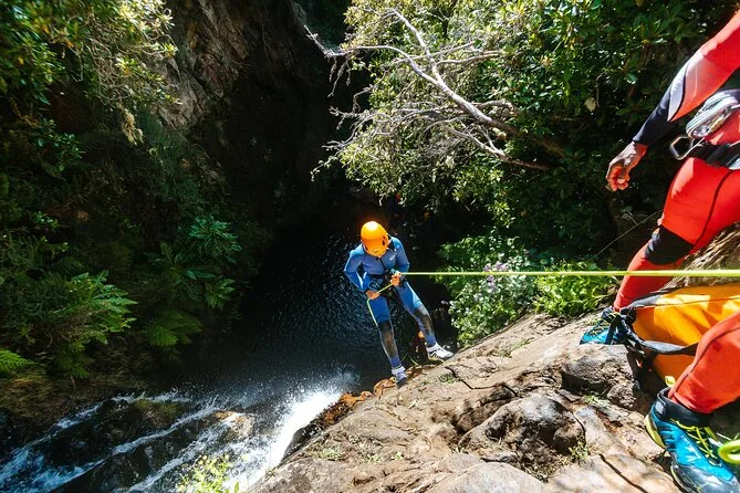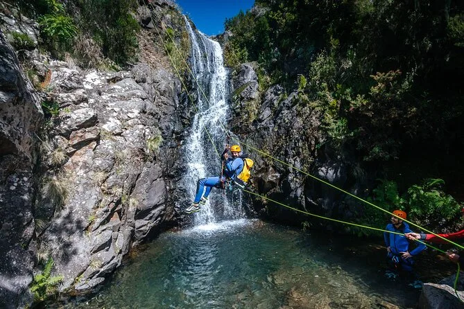 Il tuo giorno include il pickup dal Museo CR7 di Funchal, tutta l’attrezzatura tecnica—muta, casco, imbrago, scarponi con calze in neoprene—e la guida di esperti locali certificati. Avrai anche foto e video professionali della tua avventura di canyoning a Madeira prima di tornare insieme in città.