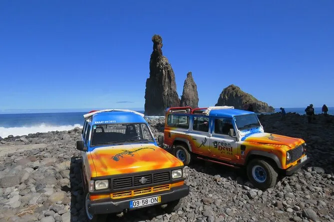 Il tuo giorno include il pick-up dal tuo hotel o indirizzo nel centro di Funchal, tutti i trasporti con jeep 4x4 aperta guidata da una guida locale esperta, tante soste per foto (e qualche corsa improvvisata al forno), più il tempo per nuotare nelle piscine vulcaniche di Porto Moniz o Seixal se il tempo è clemente, prima di rientrare nel tardo pomeriggio.
