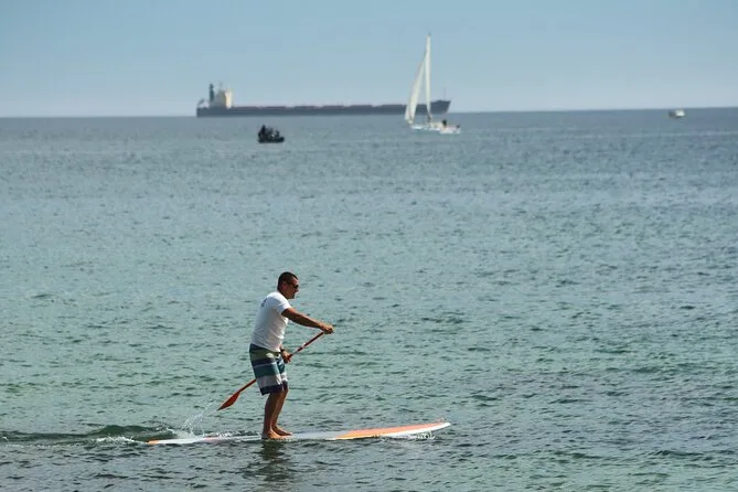 La prima cosa che ho notato salendo sulla tavola è stato il sapore salato dell’aria—un po’ pungente, mescolato con la crema solare e quel leggero sentore di sardine alla griglia proveniente da un bar lì vicino. L’acqua nella baia di Cascais quella mattina sembrava quasi una lastra di vetro, con solo qualche increspatura a rendere il tutto più interessante. La nostra guida, João, ha indicato un gruppo di barche da pesca che ondeggiavano vicino agli scogli. Ha detto che se remi abbastanza vicino, potresti vedere piccoli granchi correre o persino una medusa che si lascia trasportare. Io ho visto un pesce argentato sfrecciare proprio sotto la mia tavola—mi ha fatto ridere a crepapelle, davvero.