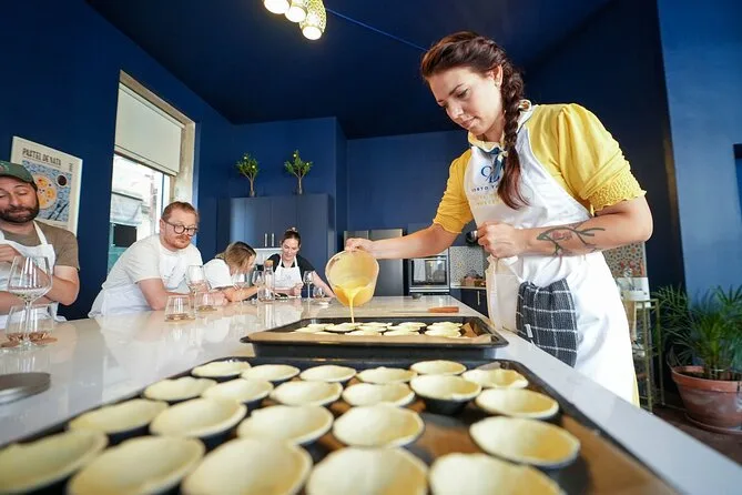 Il pomeriggio include tutti gli ingredienti per preparare il pastel de nata da zero, con la guida di esperti in una cucina centrale di Porto. Potrai gustare vino regionale mentre cucini e terminare con dolcetti freschi accompagnati da caffè o tè, prima di tornare a esplorare la città.