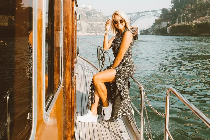 Salpa dalla Marina del Douro su una barca classica per una navigazione tranquilla lungo il fiume Douro a Porto, passando sotto sei ponti famosi con musica soft e un drink di benvenuto in mano. Ascolta storie dalla guida locale e osserva la vita che scorre sulle due sponde. Comfort, piccoli dettagli sorprendenti e momenti che restano nel cuore.