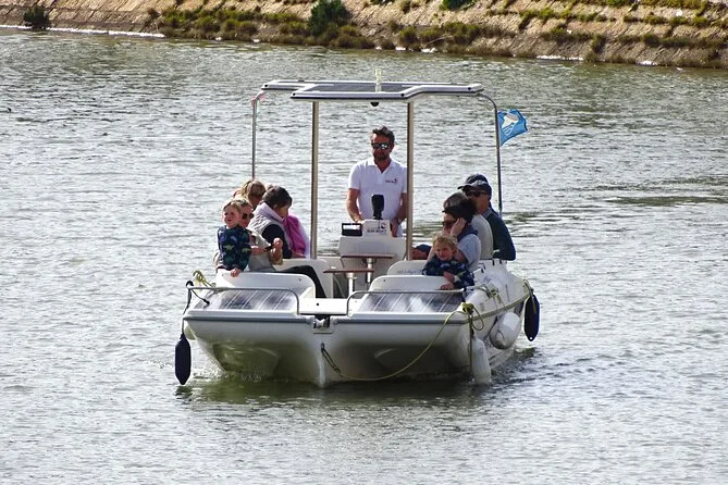 Si naviga su una barca ecologica alimentata a energia solare, con sedili comodi e zone d’ombra.