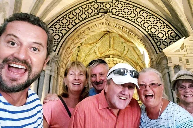 Il tuo giorno include pickup al mattino presto dal centro di Lisbona, trasporto privato in comodi van Mercedes, accesso salta-fila per Palazzo Pena e Quinta da Regaleira (biglietti pagati a parte), visite guidate all’interno dei monumenti dove possibile, soste in punti panoramici spettacolari come Cabo da Roca e Boca do Inferno, acqua inclusa, foto personalizzate scattate dalla guida durante la giornata e persino un dolce locale prima del rientro in serata.