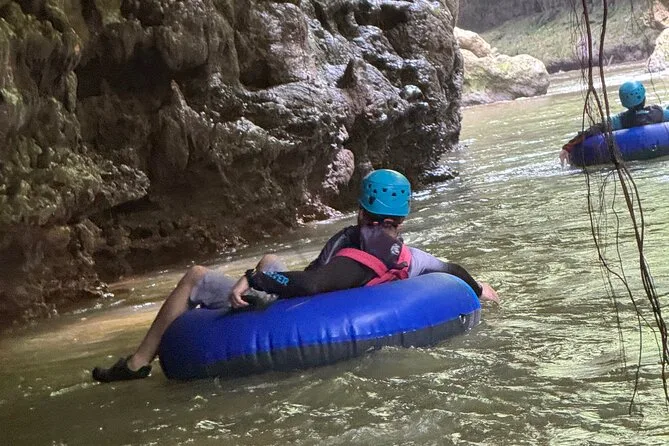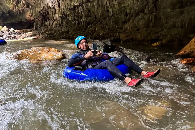 Entrare nel fiume Tanama è stato uno shock—l’acqua è fredda ma non gelida, quel tanto che basta per darti una scossa. Abbiamo camminato lungo le rive per un po’, a volte arrampicandoci su rocce scivolose di muschio. A un certo punto Carlos si è fermato vicino a una sorgente che zampillava direttamente dalla parete di roccia—ha riempito la sua bottiglia lì. Ho provato anch’io (un po’ titubante), ma aveva un sapore pulito e quasi dolce. La parte del tubing nelle grotte è stata pazzesca: galleggiare in quei tunnel che fanno eco, con la voce che ti rimbalza intorno. La luce cambia dentro—prima bluastra, poi all’improvviso dorata quando si apre uno spiraglio. Continuavo a sbattere contro le pareti perché guidare non è il mio forte.