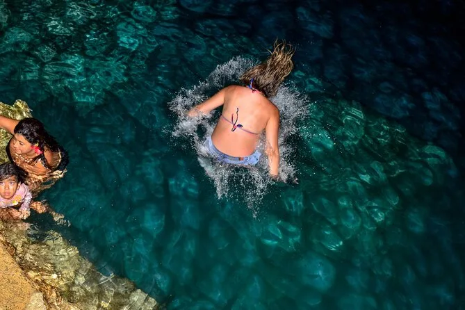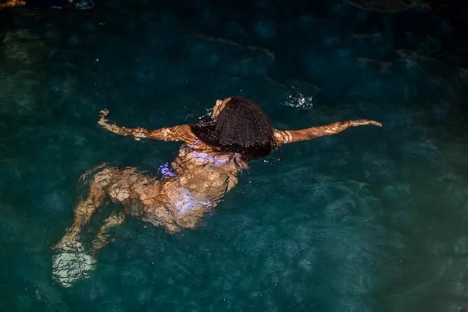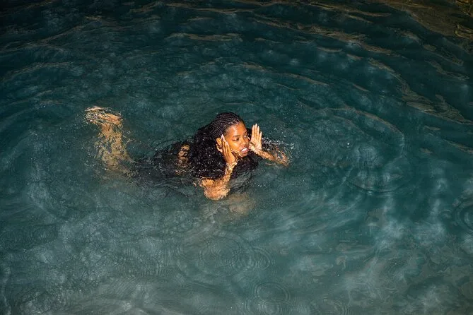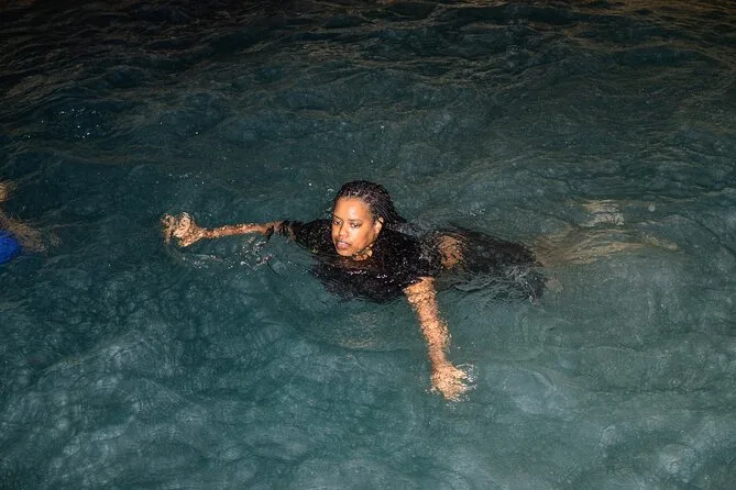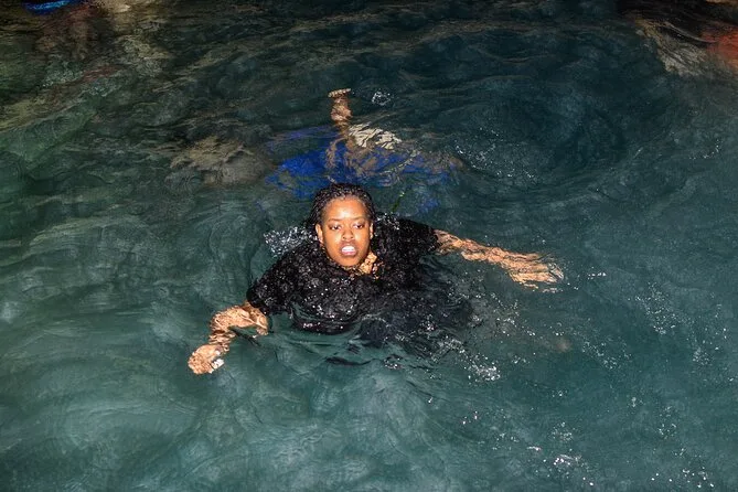 Dopo siamo andati nella grotta Taíno—onestamente non mi aspettavo molto, ma entrare è stato come varcare la soglia di un altro mondo. Era fresca e piena di echi, con qualche goccia che cadeva di tanto in tanto sulla spalla. Le pareti erano decorate con antichi disegni (Luis li ha chiamati petroglifi) che ci ha spiegato essere opera dei primi abitanti dell’isola. Abbiamo nuotato in un’acqua così limpida da sembrare irreale—un po’ fredda ma stranamente rigenerante dopo tutta la polvere del sentiero.