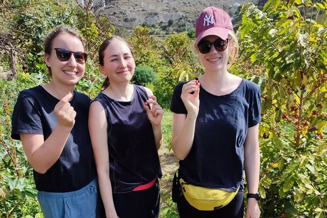 La tua giornata include una passeggiata guidata all’aperto nella sola piantagione di caffè d’Europa a Gran Canaria, con assaggi di frutti tropicali rari lungo il percorso—e se vuoi comprare più frutta alla fine, ti aspetta uno sconto del 15% prima di tornare a casa con le dita appiccicose e magari qualche chicco fresco.