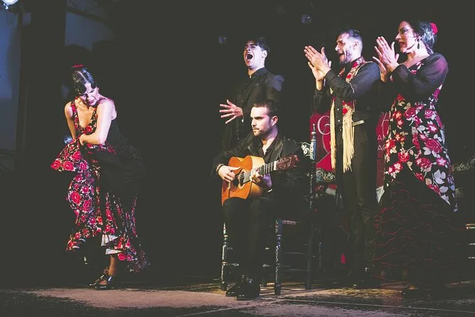 Lo spettacolo è iniziato prima che me ne accorgessi — prima un solo di chitarra che vibrava leggero, poi una voce che ti fa sentire il cuore battere più forte. I ballerini sono usciti uno a uno, con i tacchi che battevano decisi sul pavimento. A un certo punto un cantante mi ha guardato e ha sorriso quando ho provato a battere le mani (ero completamente fuori tempo). C’è qualcosa nel vedere artisti flamenco veri — vedi ogni muscolo che si muove, ogni goccia di sudore. Non è perfetto o levigato; è come se raccontassero segreti con il corpo. Un uomo vicino a me ha sussurrato che alcuni di questi artisti vengono da famiglie gitane famose in Andalusia — parlava con orgoglio anche se non erano suoi parenti.