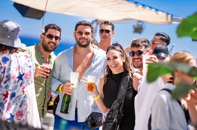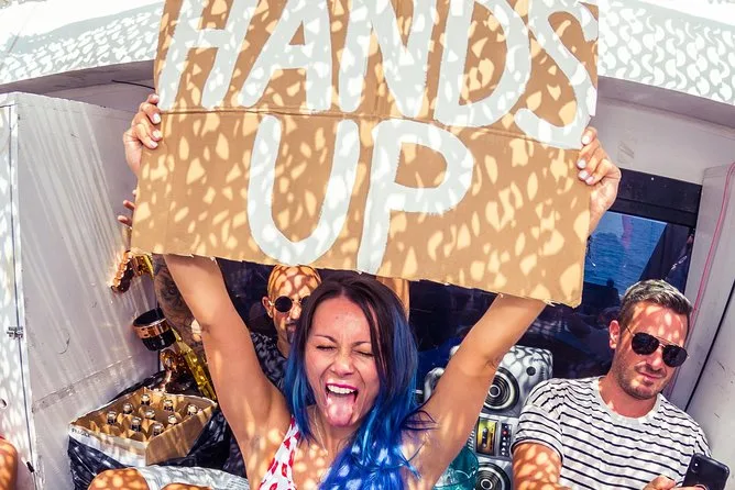 Salta a bordo di una boat party a Ibiza carica di energia—musica a palla, drink sempre pronti, risate sotto il sole. Naviga davanti ai locali più famosi, tuffati in mare turchese durante la sosta bagno, gusta cibo a bordo e poi balla o rilassati con i DJ dal vivo. Staff professionale, atmosfera vivace ma rilassata. Tornerai a terra con la pelle salata e forse qualche nuovo amico.