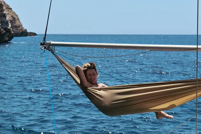 Non mi aspettavo che l’acqua a Cala Jondal fosse così cristallina — quasi irreale, come se qualcuno avesse alzato i colori. La barca sembrava più grande di quanto immaginassi, forse è solo che non sono abituato a stare in barca. Lao, il nostro capitano, ci ha accolti con un sorriso rilassato e ha detto che il vento era “perfetto”. Ho cercato di sembrare che capissi il gergo della vela. Mentre partivamo lungo la costa sud di Ibiza, nell’aria c’era quel profumo salmastro e si sentiva solo lo scafo che tagliava l’acqua. È una calma strana, ma piacevole.