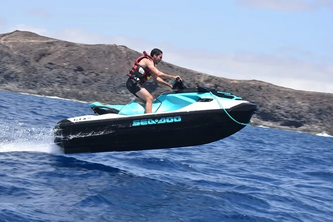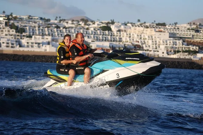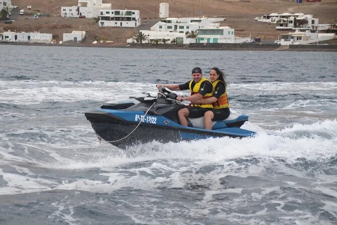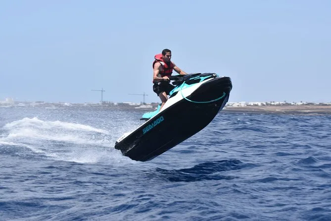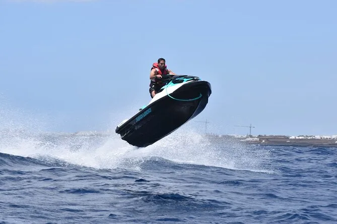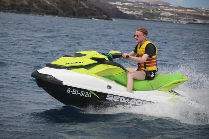 Il tour include il giubbotto di salvataggio per tutta la durata della tua avventura guidata in jet ski di 40 minuti lungo la costa di Lanzarote — basta presentarsi pronti a prendere il sole e gli spruzzi prima di tornare insieme a riva.