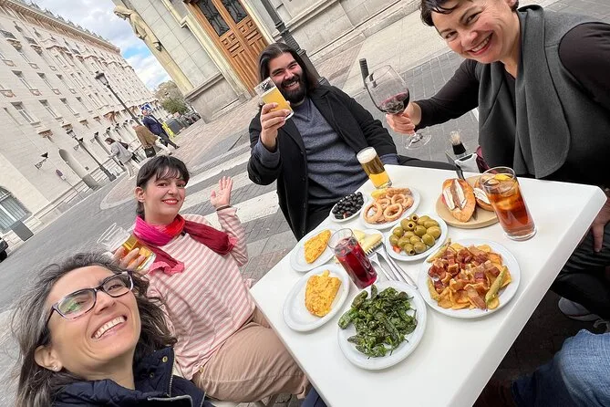 La serata prevede soste in quattro bar a conduzione familiare con tapas tradizionali di alta qualità come peperoncini padrón, tortilla spagnola, prosciutto iberico, crocchette, formaggio Manchego, pancetta di maiale, olive aromatizzate e altro; quattro drink tra vino e sangria; il tutto guidato da una guida gastronomica locale che racconta storie culturali e offre consigli per esplorare Madrid dopo il tour.