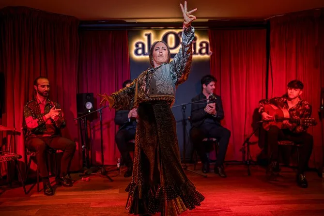 Sentirai il battito di Malaga da vicino da Alegria: flamenco dal vivo in un teatro intimo mentre piatti andalusi arrivano freschi dalla cucina accanto. Guarda gli artisti versare emozione in ogni passo e canzone, poi rilassati a cena mentre le voci locali scorrono accanto al tuo tavolo. Non è patinato o distante — sei proprio dentro l’esperienza.