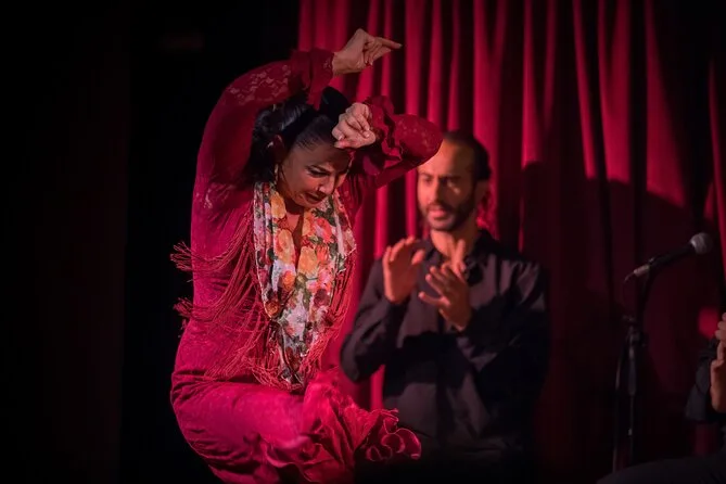 La tua serata include l’ingresso a uno spettacolo flamenco dal vivo intimo da Alegria nel centro di Malaga; se vuoi restare più a lungo, puoi prenotare un tavolo per cena con piatti tradizionali andalusi e opzioni vegane, tutto a pochi passi dal porto di Malaga.