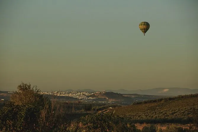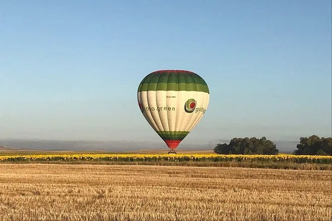 Vola sopra la campagna di Siviglia in mongolfiera con una guida locale, ammirando cavalli e girasoli da 450 metri di altezza. Dopo l’atterraggio, goditi una ricca colazione andalusa e un brindisi con cava—momenti di meraviglia e allegria che porterai con te a lungo.
