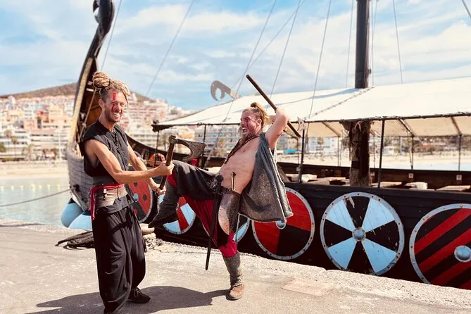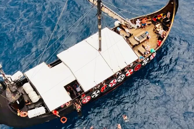 Il tuo giorno include l’imbarco al porto di Los Cristianos con un equipaggio vichingo vivace che ti guiderà in mare aperto; birra, vino e bibite illimitate a bordo; tanto tempo per avvistare delfini e balene; una sosta per nuotare in mare aperto con vista sulla costa di Tenerife; servizi igienici a bordo; e giochi a tema vichingo prima del ritorno al porto dopo tre ore.