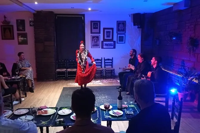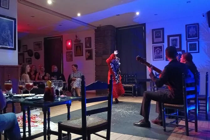 Immergiti nel vero ritmo di Triana al Baraka con un flamenco dal vivo a pochi passi dal Guadalquivir. Vivi ogni battito e ogni corda da vicino mentre gli artisti locali riempiono la sala di energia. Incluso il primo drink — vino o birra — e accesso per disabili, così tutti sono benvenuti. Potresti andartene canticchiando o semplicemente emozionato.
