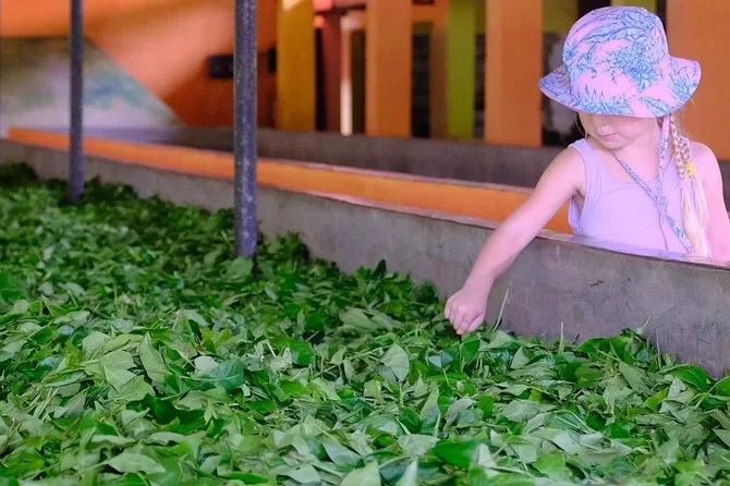 Dopo pranzo (abbiamo preso un rapido riso e curry in un caffè lungo la strada), abbiamo visitato il grande tempio del Buddha. Impossibile non notarlo—la statua dorata domina tutto il paesaggio. All’interno c’è una sorta di “sala degli orrori” con figure a grandezza naturale che mostrano cosa succede ai peccatori (è forte, ma affascinante). Il tempio è animato da fedeli che accendono incenso e parlano a bassa voce. Ultima tappa: una piantagione di tè sulle colline sopra Koggala. La visita è gratuita e la guida ci ha spiegato come producono oltre 25 tipi di tè, incluso un delicato Virgin White che viene raccolto foglia per foglia. Abbiamo assaggiato qualche campione sulla veranda, mentre le nuvole scivolavano sui campi. Al ritorno, abbiamo fatto una breve deviazione a Coconut Tree Hill a Mirissa—giusto in tempo per il tramonto. Locali e turisti si sono radunati per ammirare quel panorama: palme contro il cielo arancione, onde che si infrangono sotto. Uno di quei momenti semplici che restano nel cuore.
