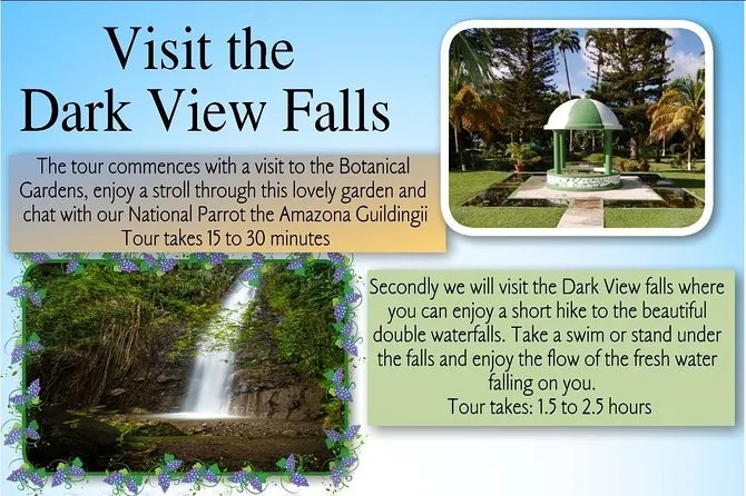Il tuo giorno include trasporto privato con aria condizionata e WiFi a bordo, pick-up dal tuo alloggio se necessario, acqua in bottiglia e bevande analcoliche o alcoliche durante il tragitto—oltre a una guida locale che condivide storie mentre esplori Fort Charlotte, fai il trekking a Dark View Falls e ti godi il bagno a Buccament Bay prima di tornare comodi.