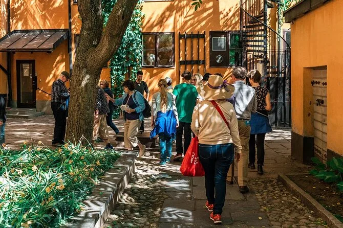 Eravamo già a metà di Prästgatan quando la nostra guida, Anna, si fermò davanti a un vecchio portone storto. Ci fece notare come le pietre sotto i nostri piedi fossero levigate da secoli di passaggi—onestamente, non avevo mai pensato ai ciottoli in quel modo. L’aria portava un leggero profumo di caffè tostato da un bar poco lontano (volevo prenderne uno ma non volevo perdere il gruppo). Anna ci raccontò di Helvetsgränd—la “Vicolo dell’Inferno”—che suonava molto più drammatico di quanto sembrasse. Provai a pronunciarlo in svedese e un signore anziano che passava rise divertito, fece un sorriso e proseguì.