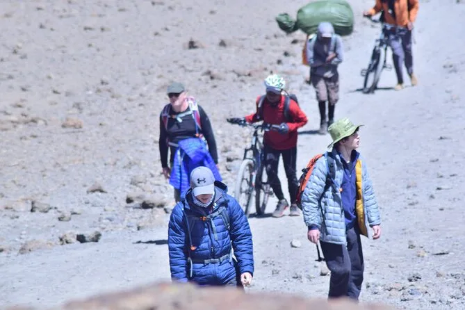Il tour include trasporti privati (anche pick-up e drop-off dall’aeroporto), guide locali esperte e staff, alloggi prima e dopo il trekking (organizzati da noi o prenotabili direttamente), tutti i trasferimenti ai cancelli, pasti giornalieri durante il trekking e il supporto dei portatori che ti aiutano a trasportare l’attrezzatura, così puoi concentrarti solo a pedalare e goderti ogni momento sul Kilimanjaro!