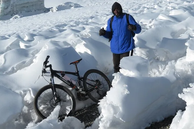Pedalare fino alla cima della montagna più alta d’Africa sembra un’impresa folle – ed è proprio così! Questo tour ti porta in bici lungo la Kilema Route, con guide locali esperte che conoscono ogni sentiero e trucco per affrontare l’altitudine. Vivrai paesaggi che vanno dal deserto alpino alla foresta pluviale, e sì, pedalerai davvero fino quasi all’Uhuru Peak.