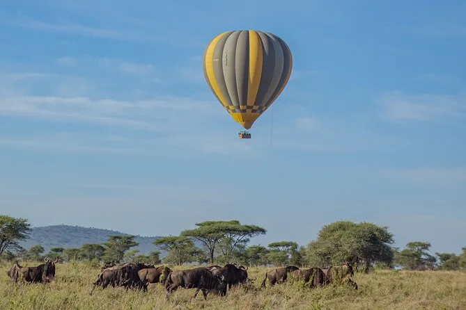 La giornata include il pick-up mattutino in hotel e il trasporto al punto di decollo, dove potrai gustare tè o caffè prima del volo. Il safari in mongolfiera prevede l’osservazione guidata della fauna con binocoli forniti a bordo. Dopo l’atterraggio, brindisi con champagne e colazione fresca nella savana di Tarangire, con festeggiamenti per occasioni speciali e un certificato ricordo prima del trasferimento successivo con l’autista.