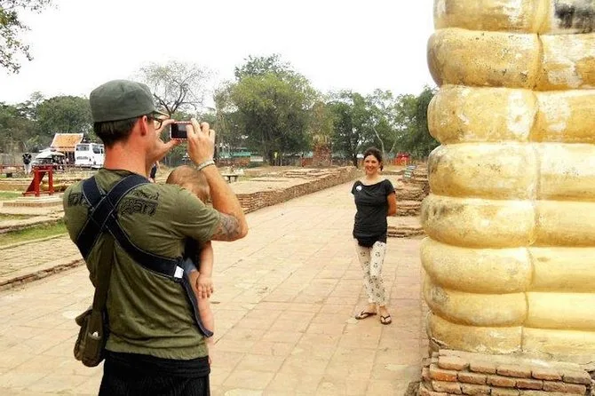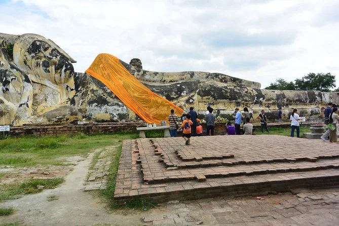 Camminerai tra antichi templi di Ayutthaya con una guida locale, vedrai il gigantesco Buddha sdraiato e la famosa testa di Buddha tra le radici, gusterai un pranzo thailandese sul fiume e vivrai momenti di vera connessione con la storia, i locali e il gruppo, che resteranno con te a lungo.