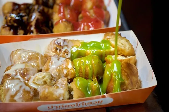 Gira per Bangkok in tuk tuk con una guida locale, assaggiando il leggendario mango sticky rice da Kor Panich e il pad thai affumicato cotto a fuoco vivo. Sorseggia tè alle erbe nella vivace Chinatown e gusta dolci fritti croccanti—il tutto mentre attraversi le strade della città dal giorno alla notte. Non è solo mangiare, è condividere risate e storie lungo il percorso.