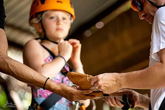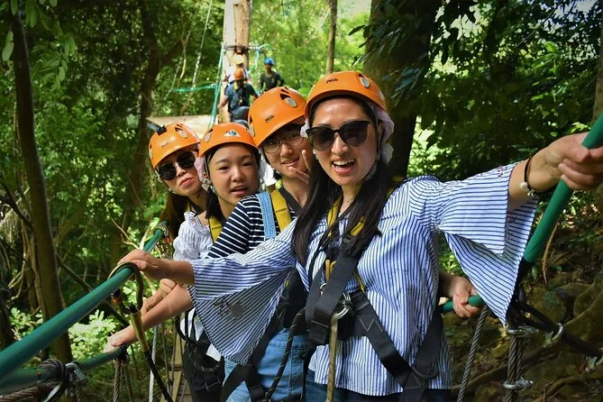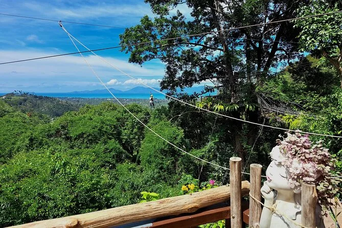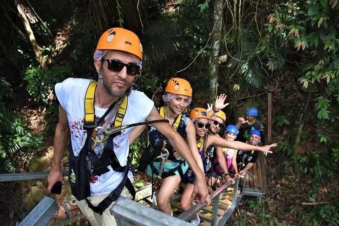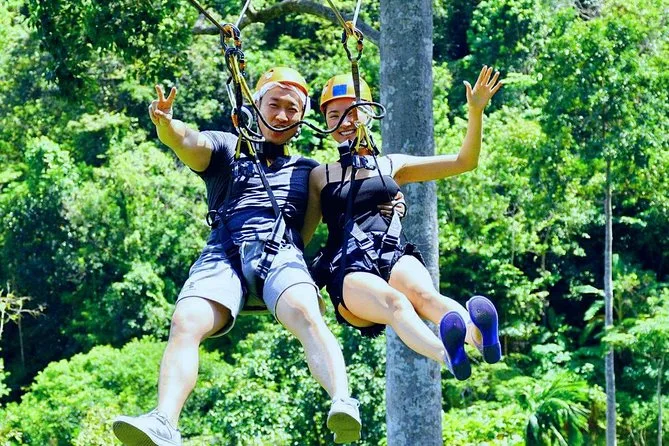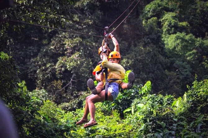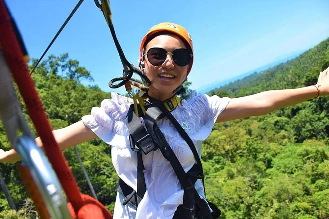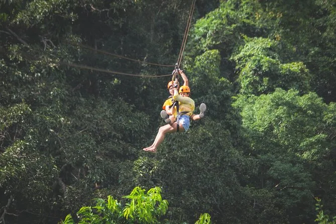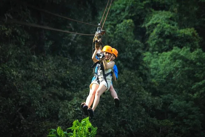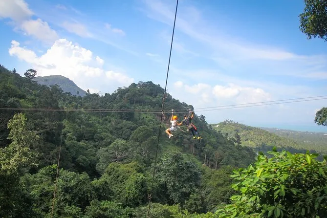 La tua giornata include trasferimenti andata e ritorno da hotel selezionati di Koh Samui, attrezzatura completa di sicurezza (imbrago e casco), acqua in bottiglia, guida in inglese che si occupa di formazione e supervisione durante tutta l’avventura zipline nella giungla sopra la cascata Tan Rua, e assicurazione per la tua tranquillità mentre sei in volo.