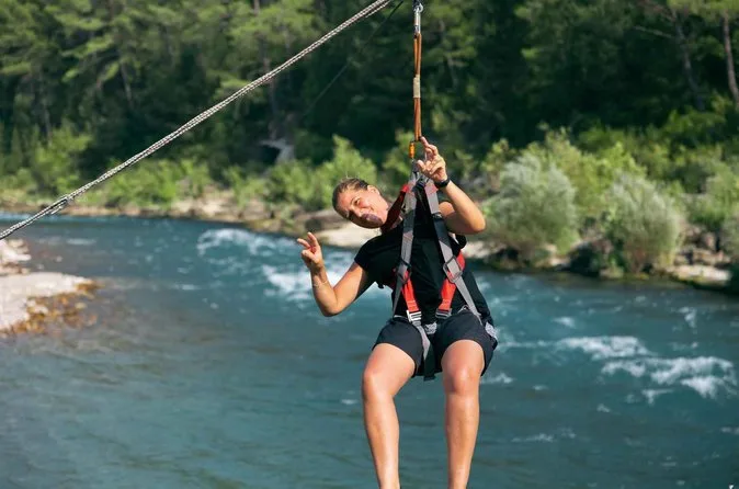 Affronta le rapide del fiume Koprucay con una guida locale, esplora i sentieri tra i pini in quad e vola sopra la foresta con una zipline, tutto con pick-up in hotel e pranzo incluso. Preparati a ridere, sporcarti e vivere momenti che non dimenticherai.